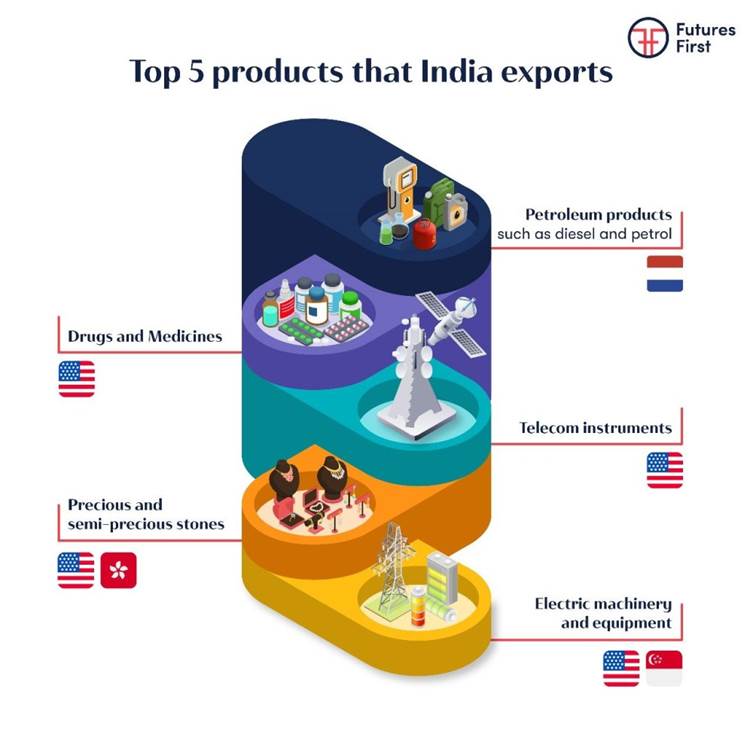 Similarly, we can look at how India’s foreign trade has been shaping up recently. As per recent data, the top 5 products that India exports are as follows: –